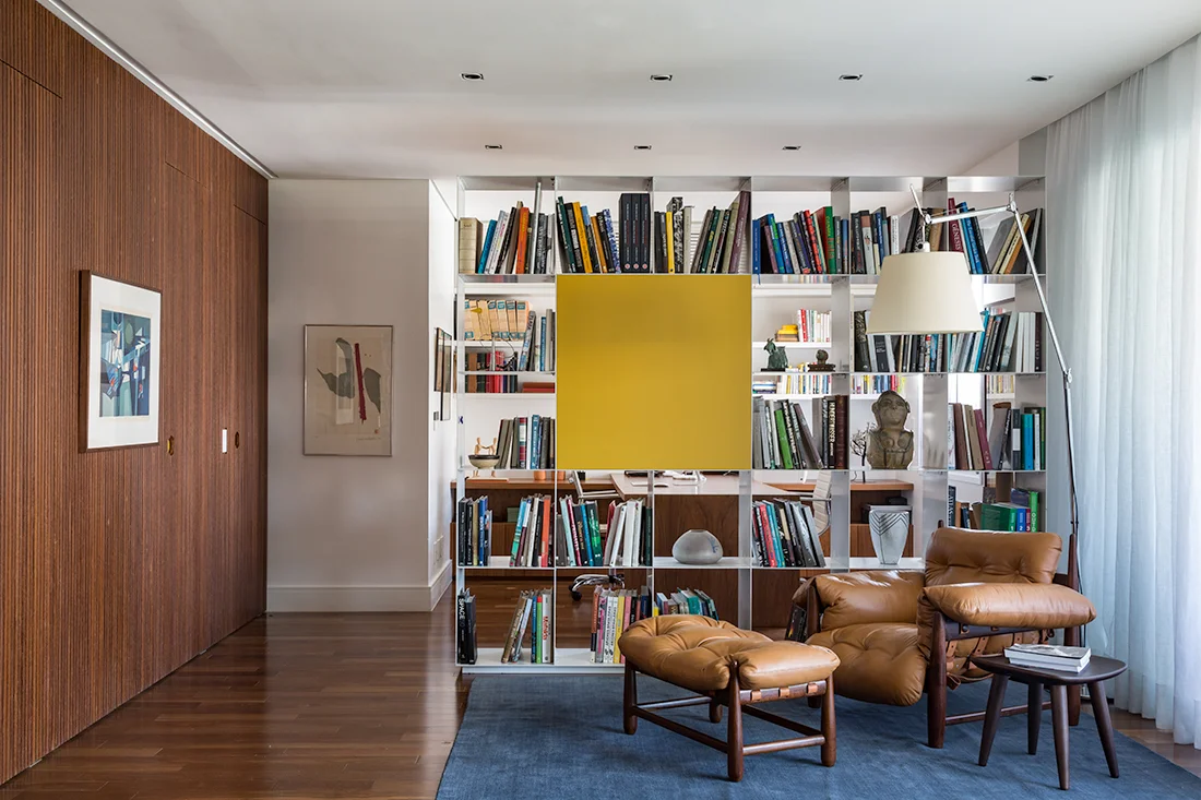 Dizem sobre os livros: eles transformam as pessoas que transformarão o mundo. Dar a devida importância para esses verdadeiros agentes foi um dos ingredientes para o projeto desse apartamento em Pinheiros ser um sucesso.