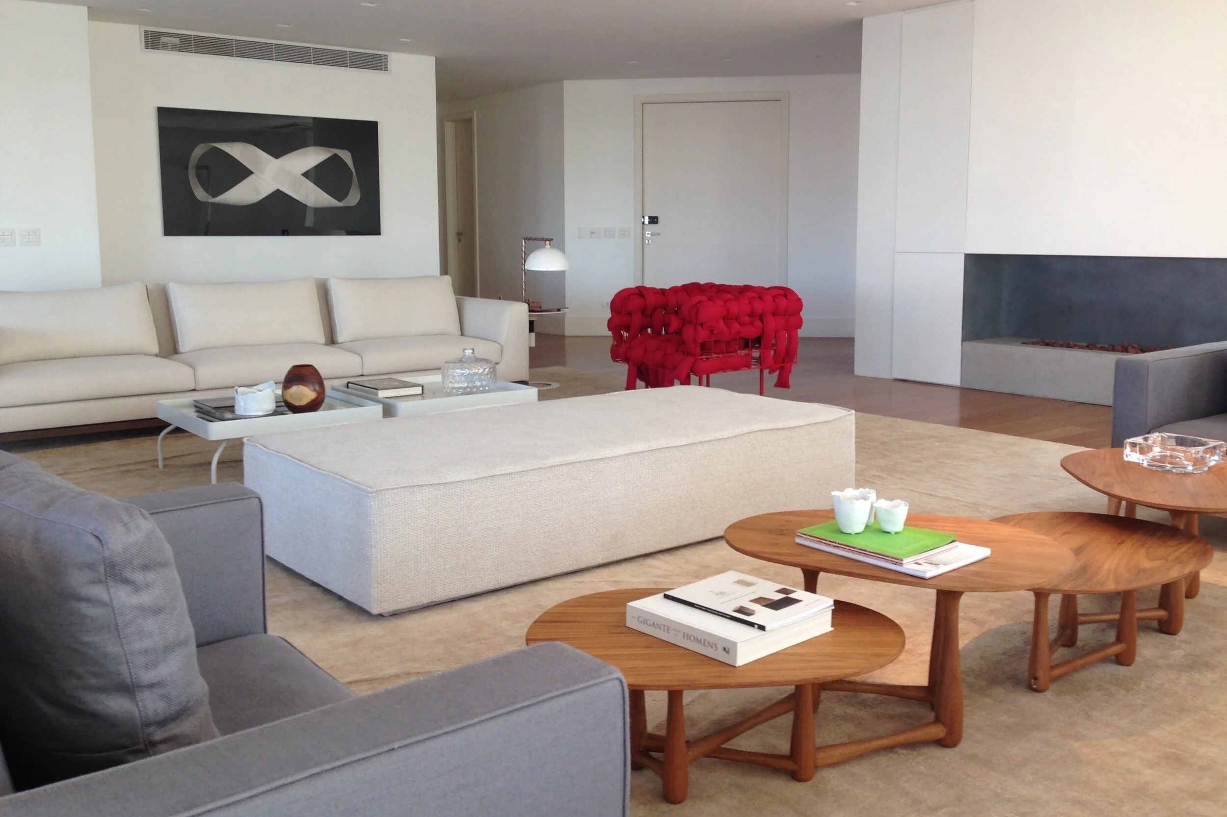 Constituiu um desafio a planta espaçosa, pois existe uma dimensão agradável de espaço entre sofás e de conseguir uma boa conversa entre amigos. Para vencer essa questão foi idealizado um ambiente na maior medida possível e foi colocado em seu raio vários bancos e apoios; uma solução acertada para os moradores que adoram ficar rodeados de boa companhia nos jantares e festas.