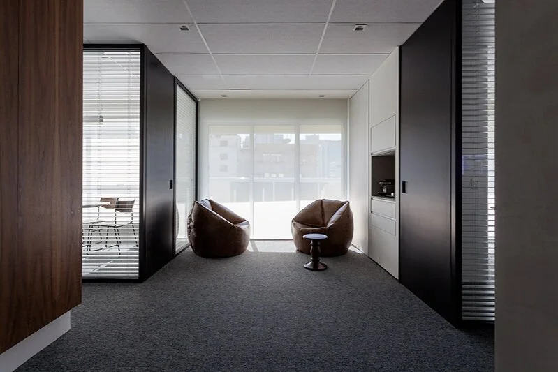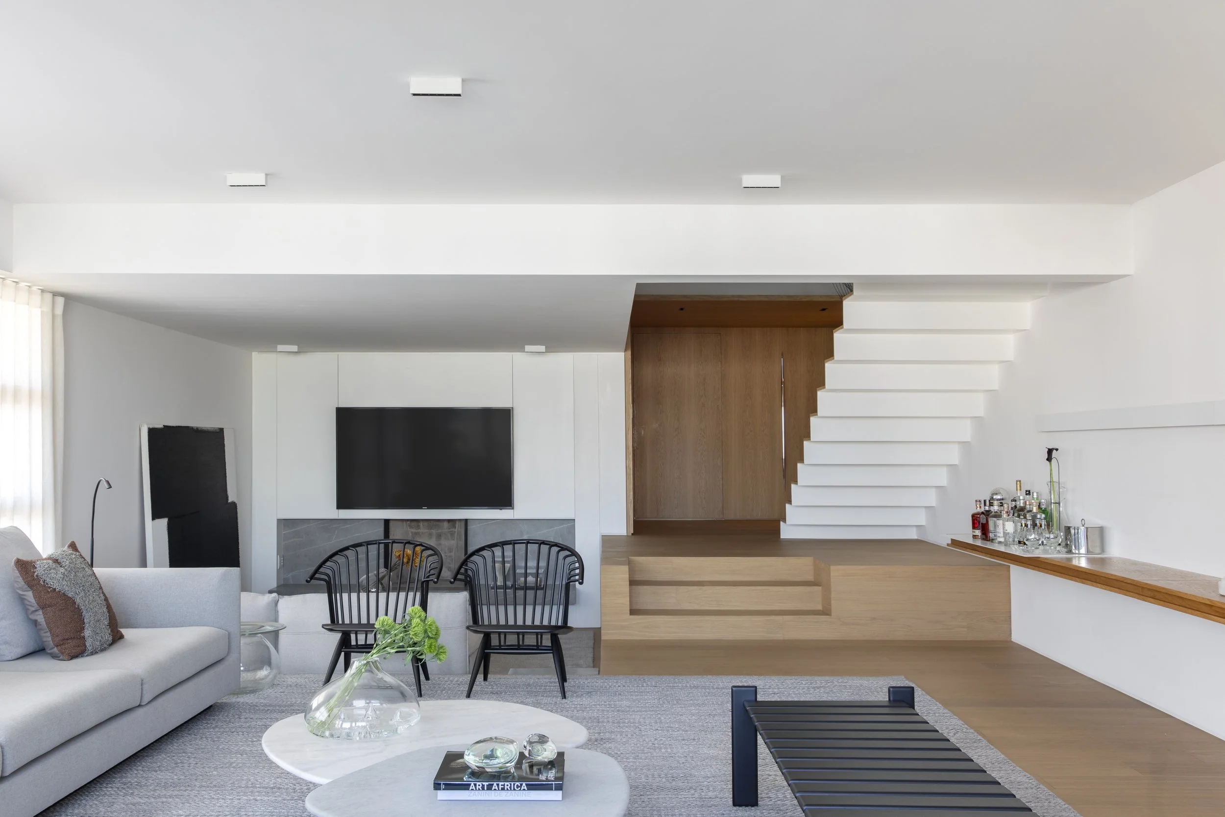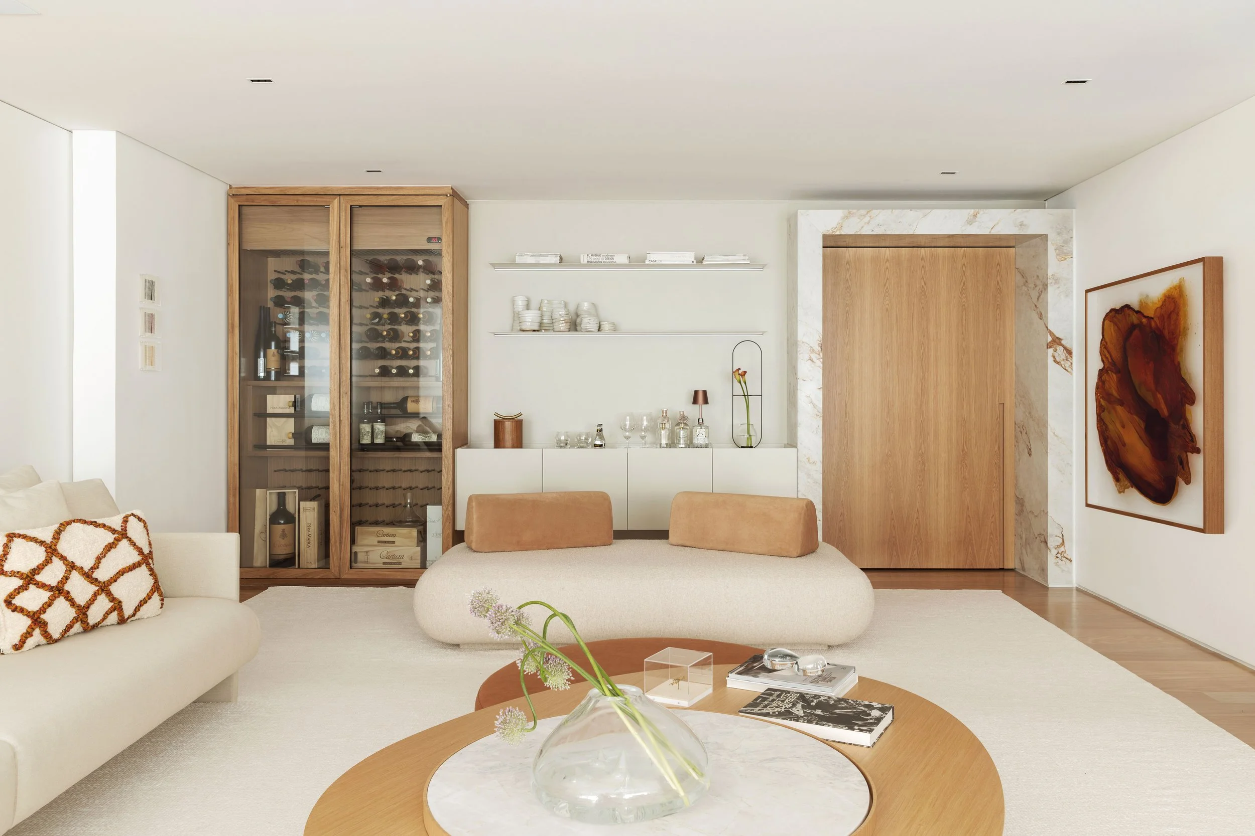 O detalhamento de marcenaria e a execução da caixilharia foram peças fundamentais para o resultado final, criando uma base neutra e contemporânea, com materiais nobres e duráveis.
