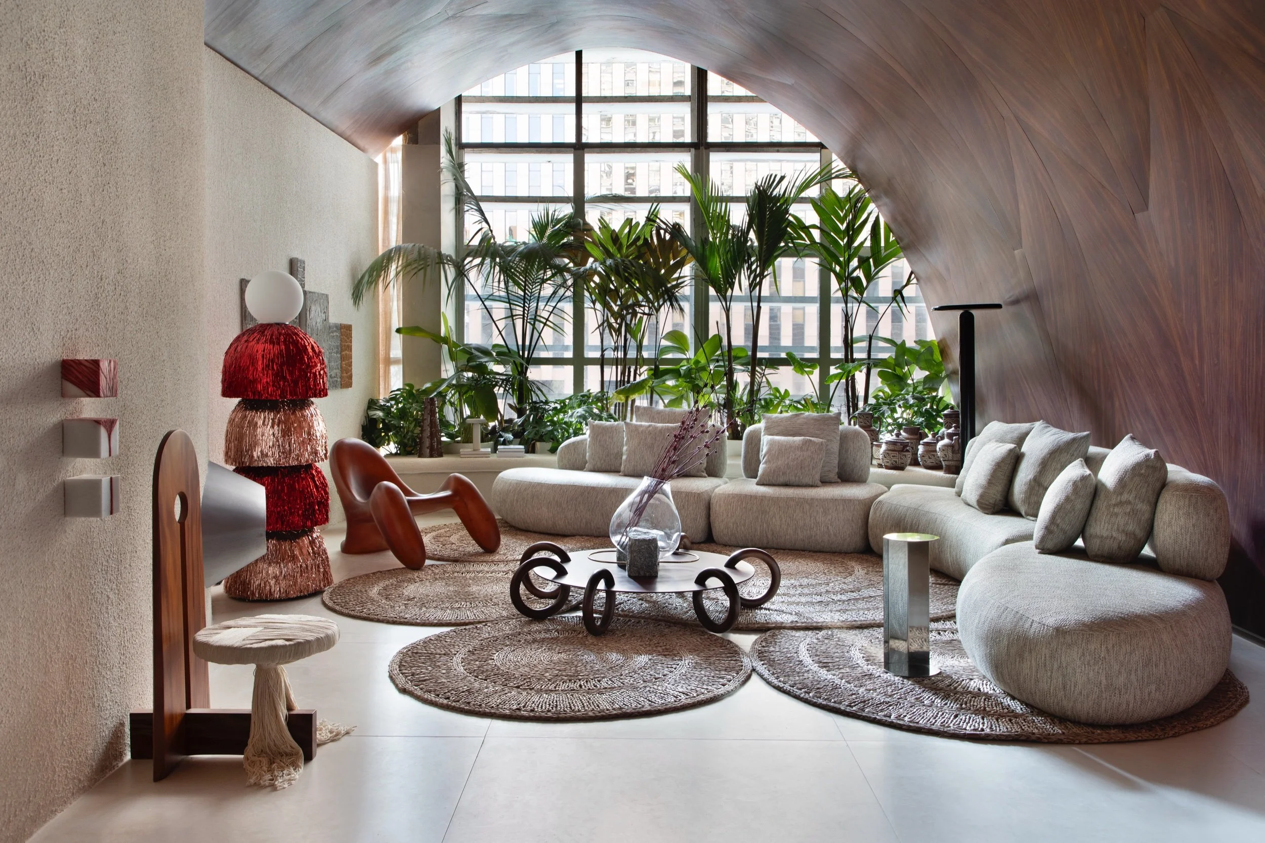Para o mostra de decoração mais importante do País, criamos um ambiente que traduzisse a diversidade brasileira e a ideia de herança cultural. Para dialogar com essas raízes, nossa inspiração acessou muito da arquitetura vernacular do Brasil e das memórias afetivas ligadas a esse repertório.