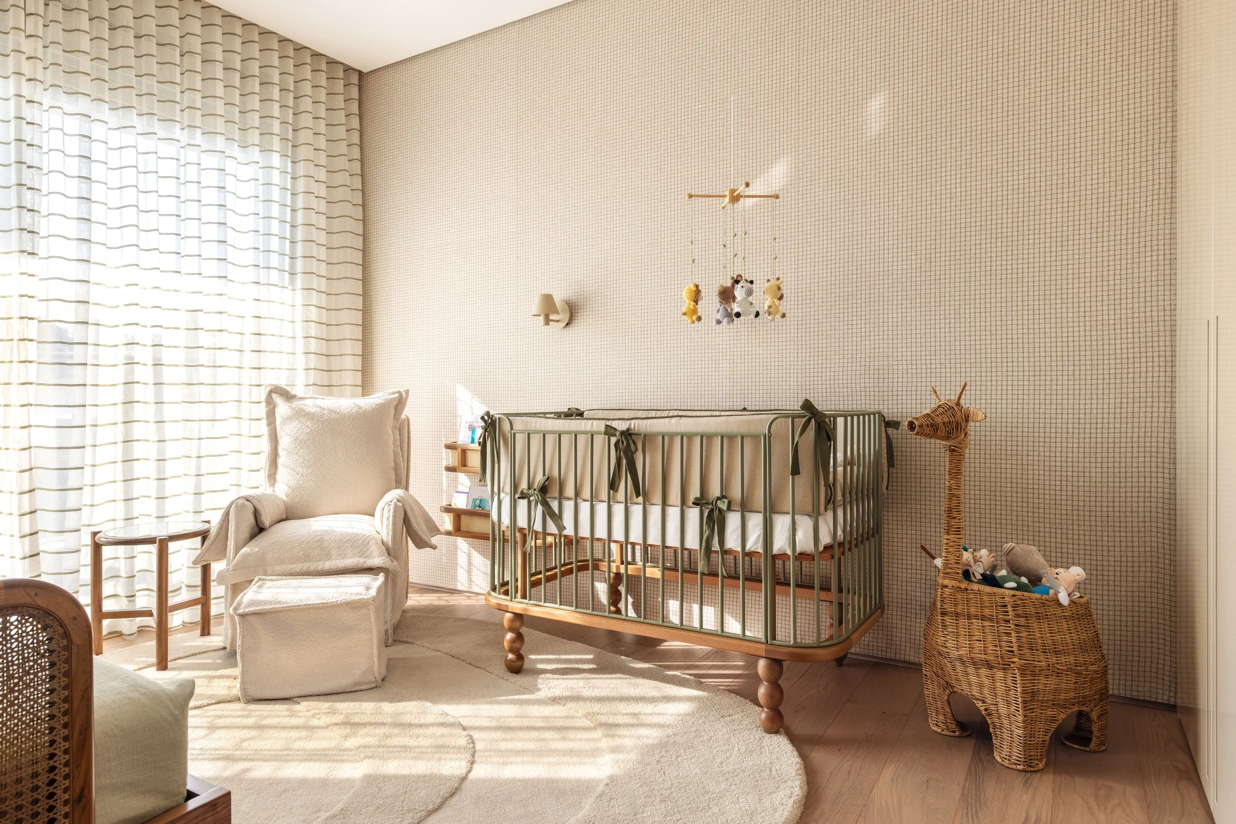 A atenção com a luminosidade, os tapetes, e as bancadas foi minuciosa, especialmente porque as datas sempre são um desafio quando se trata de quartos de bebês; atualmente os prazos para marcenarias e dos mobiliários são extensos. Nesse caso, o contato começou em fevereiro e o apartamento ficou pronto em maio.
