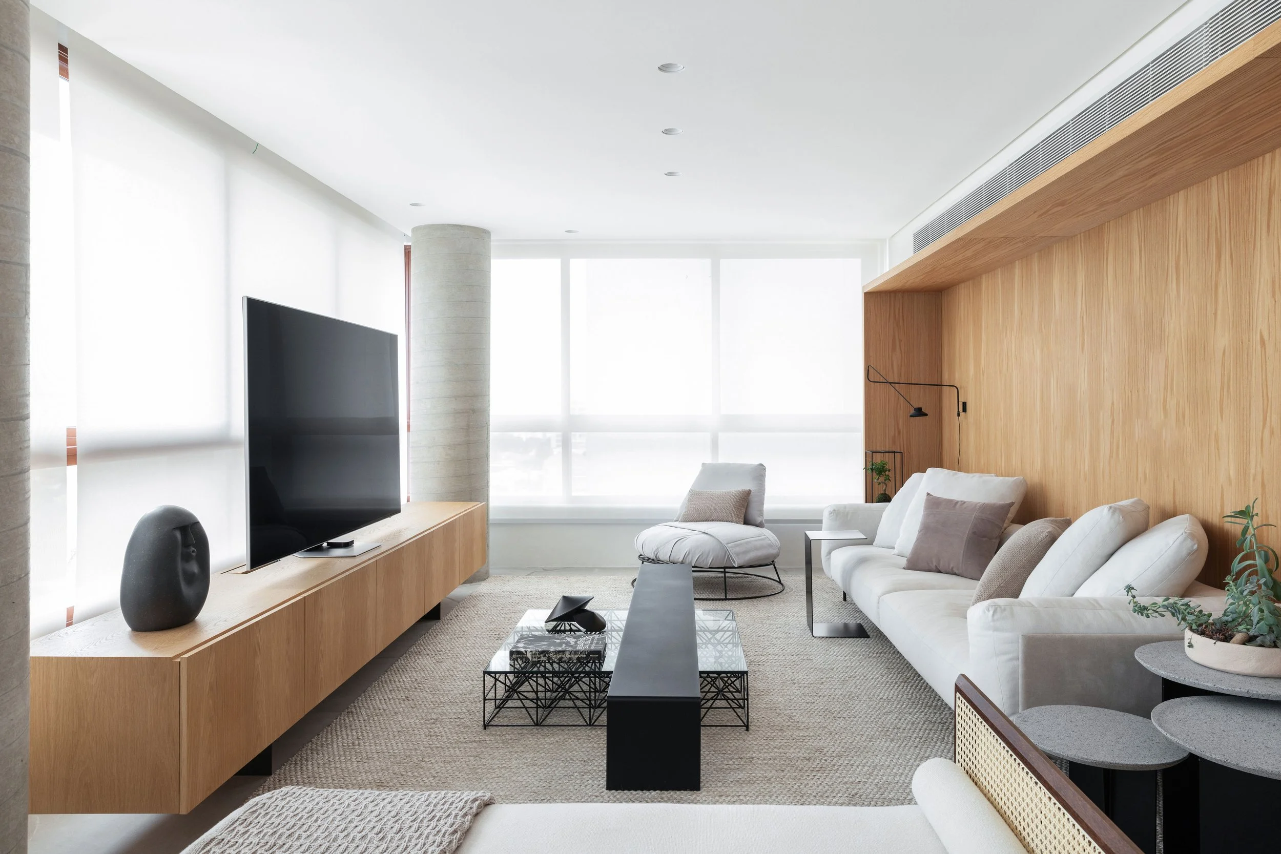 Uma família com dois adolescentes em casa está acostumada a habitar em volta da TV. A partir dessa premissa e da vontade dos clientes, desenvolvemos um ambiente sofisticado e voltado para o lazer.